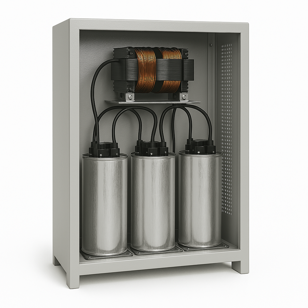 Em sistemas com grande conteúdo de harmônicas, a simples dessintonia pode não ser suficiente. Nesses casos, recomenda-se a utilização de bancos de capacitores com filtros ativos, que monitoram e compensam dinamicamente as distorções harmônicas.