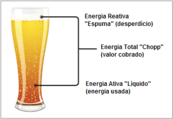 Para entender o conceito de energia reativa, vamos imaginar um copo de chopp.